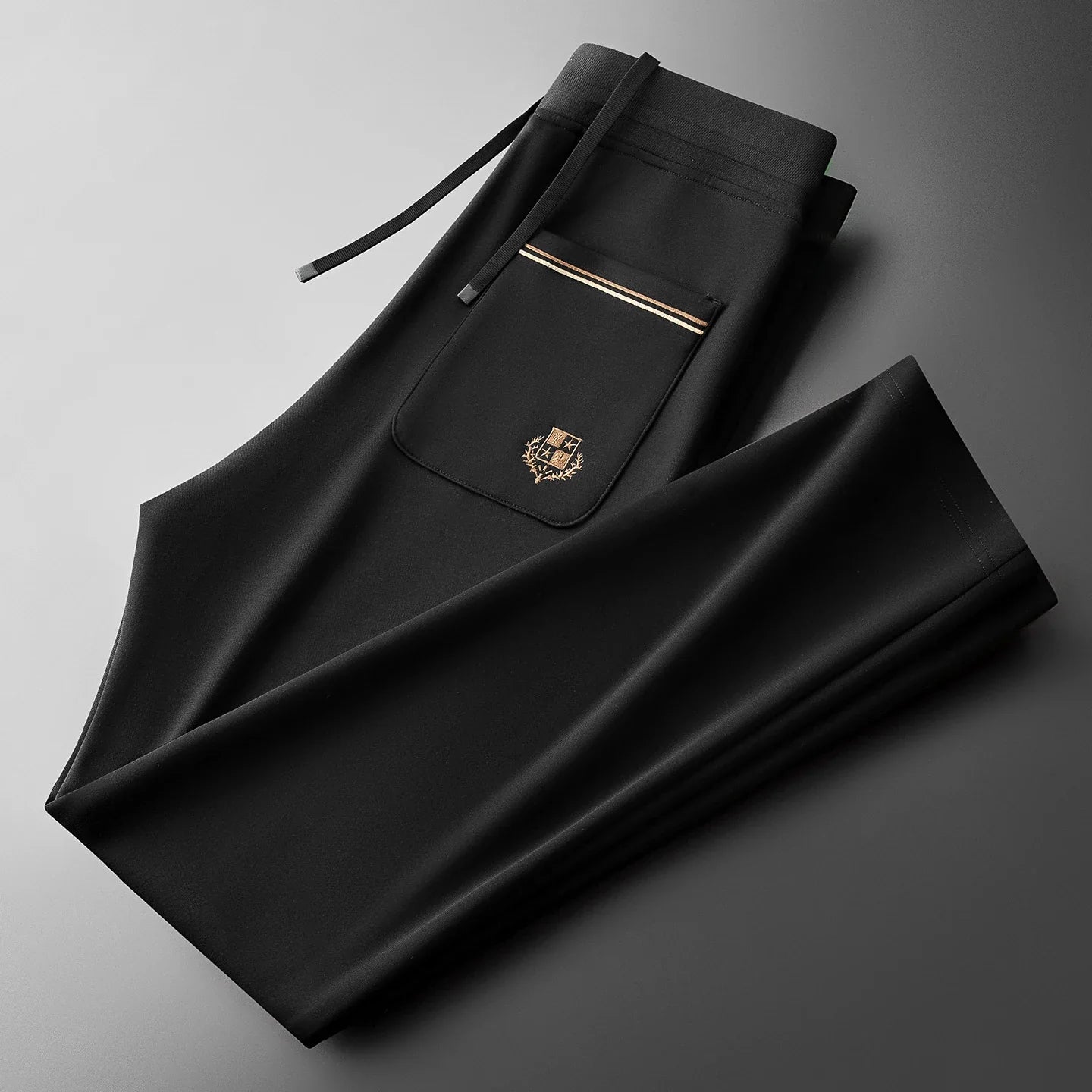 Refined straight leg trousers with a clean drawstring waist. Soft stretch cotton blend for all day comfort. Designed for understated luxury and everyday elegance.