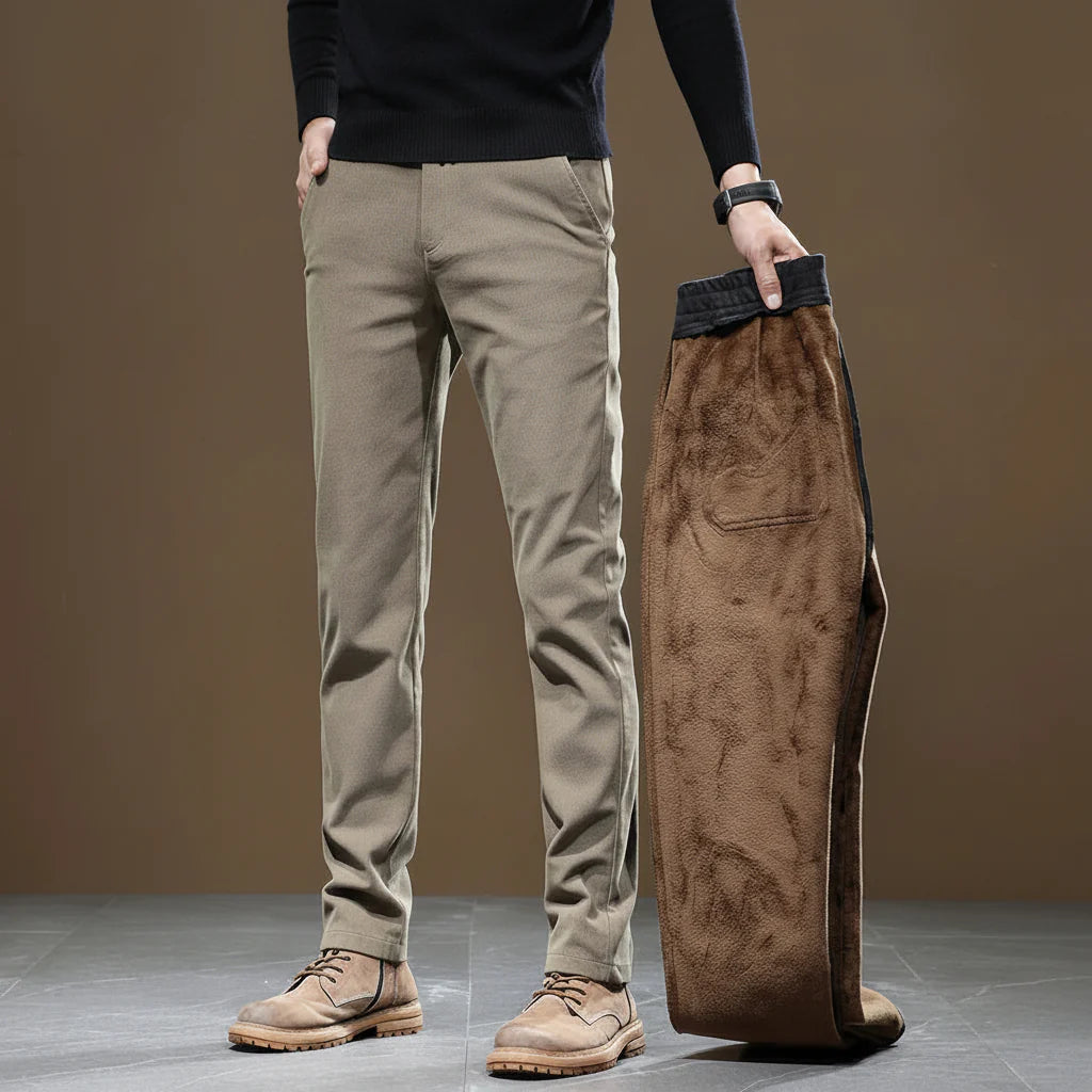 Soft fleece lined corduroy for warmth and comfort. Slim fit with clean structure for daily or business wear. Stretch fabric that moves with you and keeps its shape.